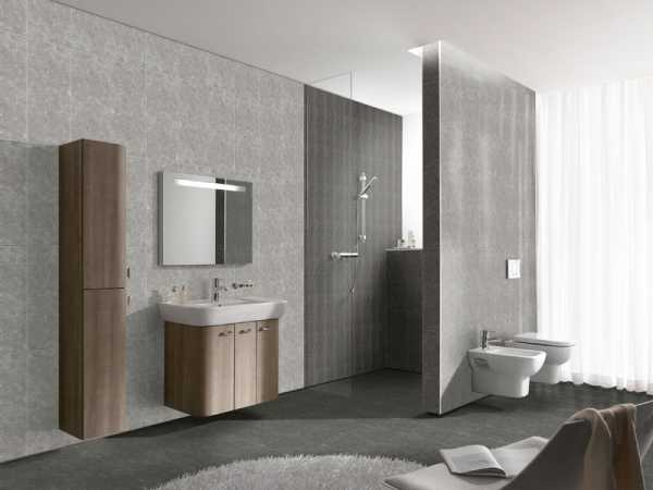 Лучшим выбором для покрытия стен ванной будет матовая плитка под мрамор. Можно обратить внимание на коллекции Blast, Fresco, Versus и Vintage, VitrA Rock.
