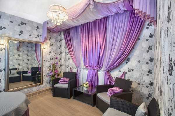 Сиреневые шторы вы можете увидеть в таких помещениях: