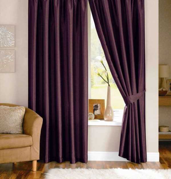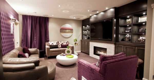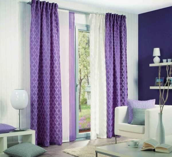 Фиолетовые шторы в зал смотрятся довольно не плохо, если помещение большое хорошо освещено. Главное – правильный подбор основного цвета, на котором будет акцентировано внимание.