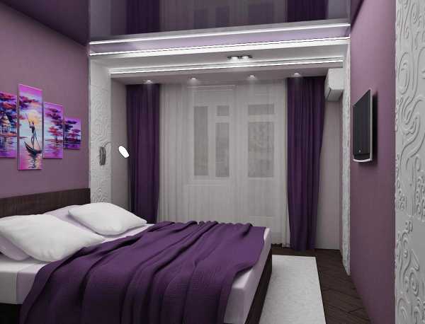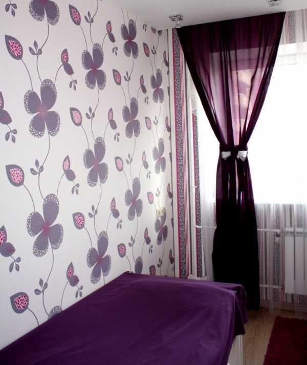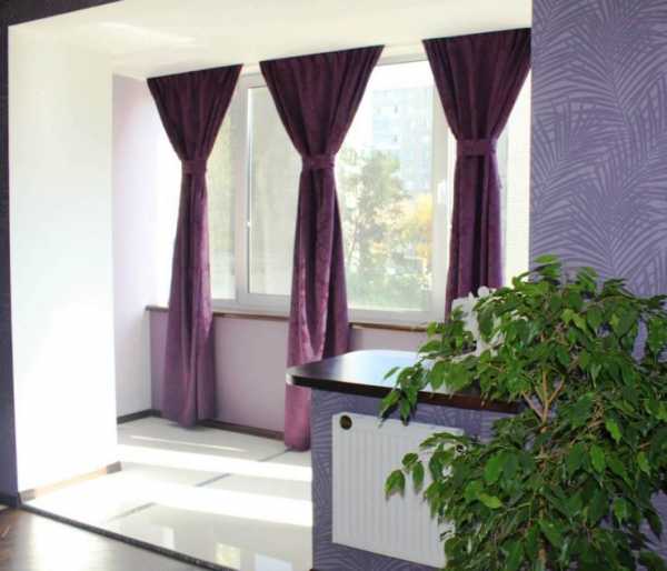 Для визуального увеличения пространства можно использовать шторы светло-фиолетового оттенка с постепенным переходом в темный.