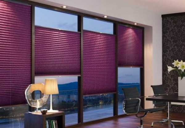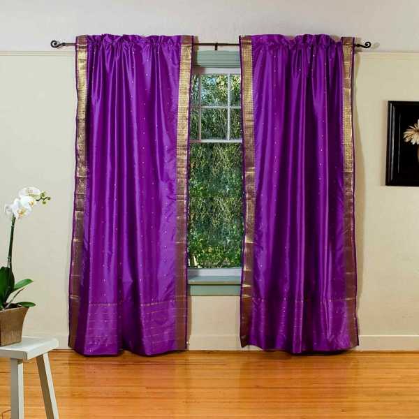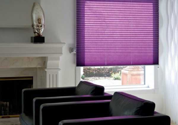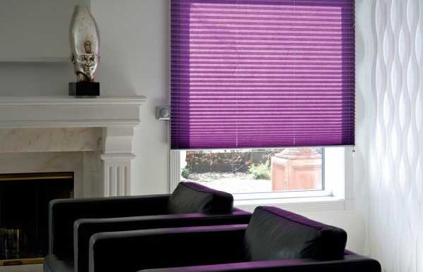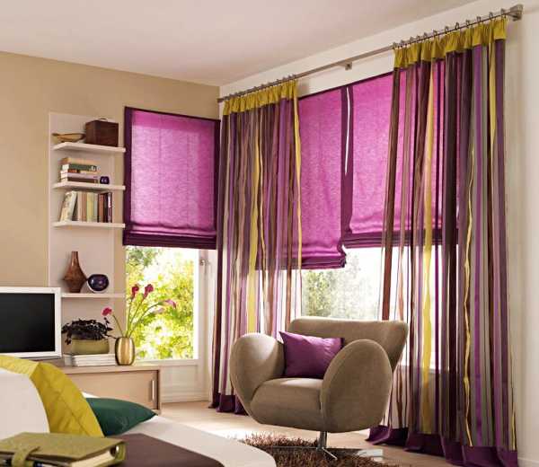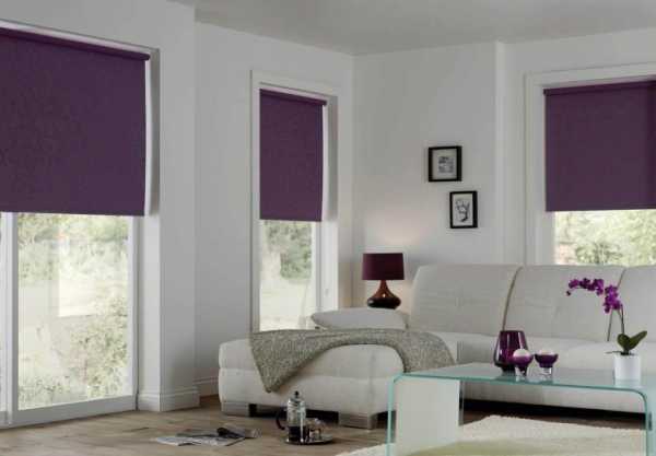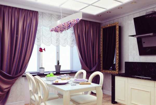 Фиолетовые шторы в интерьере встречаются на южных окнах помещений, где постоянно много солнечного света. Такие шторы станут оптимальным решением в стиле день и ночь.