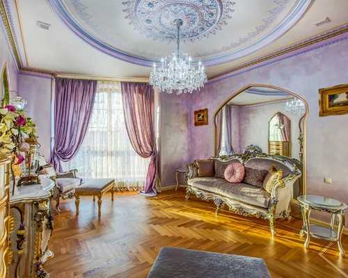 Сиреневый цвет в отделке помещений не теряет своей актуальности на протяжении столетий. Олицетворяя утонченность и одухотворенность, чаще всего используется для классических, барокко и рококо интерьеров.