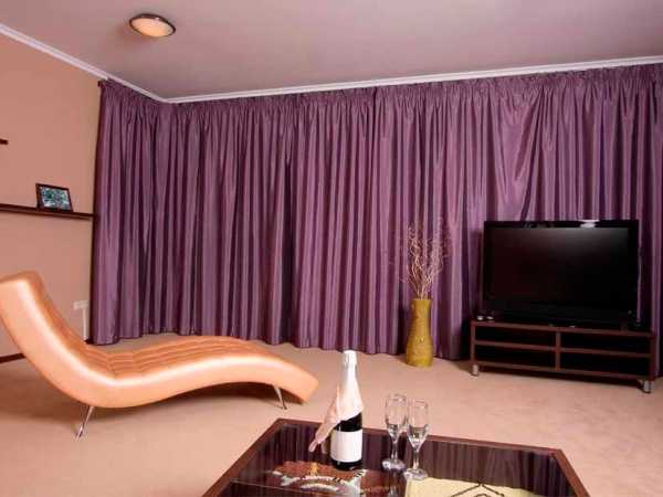 Сиреневые шторы из тяжёлой ткани в гостиной