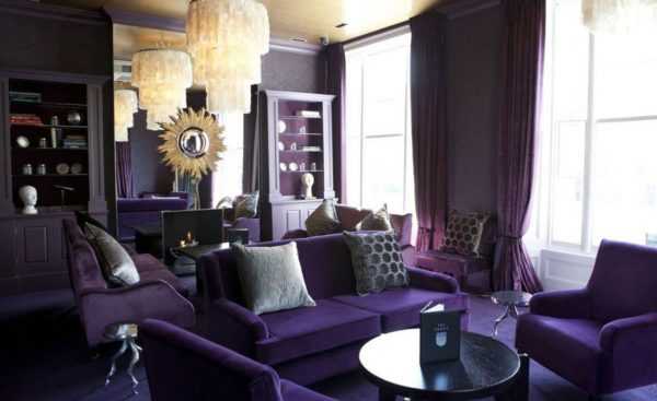 Лучше всего использовать фиолетовый в интерьере гостиной, торжественных залов, коридоров и в санузлах.