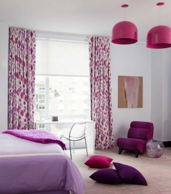 Для девочек подойдут сиреневые шторы вместе с розовым цветом. Подросткам больше понравится насыщенный сиреневый тон с серым.
