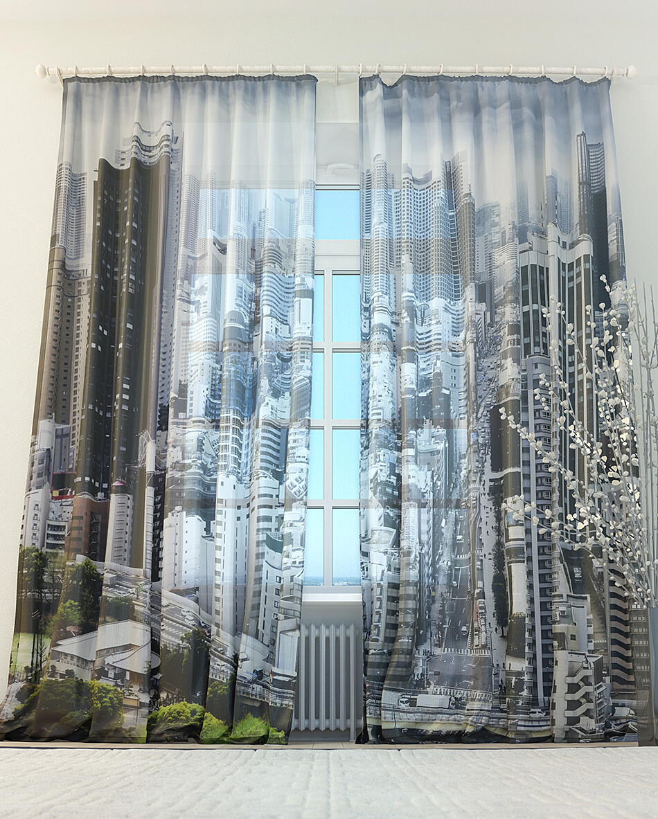 Не так давно на рынке появилась новинка: тюль с 3D рисунком или, как еще говорят, «с фотопечатью». Есть большое количество рисунков, они, конечно, красивые, но чтобы не перегружать интерьер, вся остальная обстановка должна быть очень спокойной.