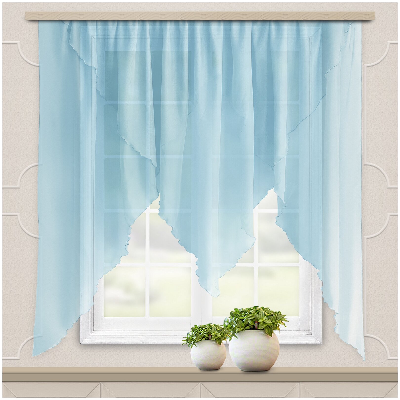 Расход тюля рассчитывается очень просто: для хорошей драпировки тюль должен быть шире в 2-3 раза, чем ширина карниза.