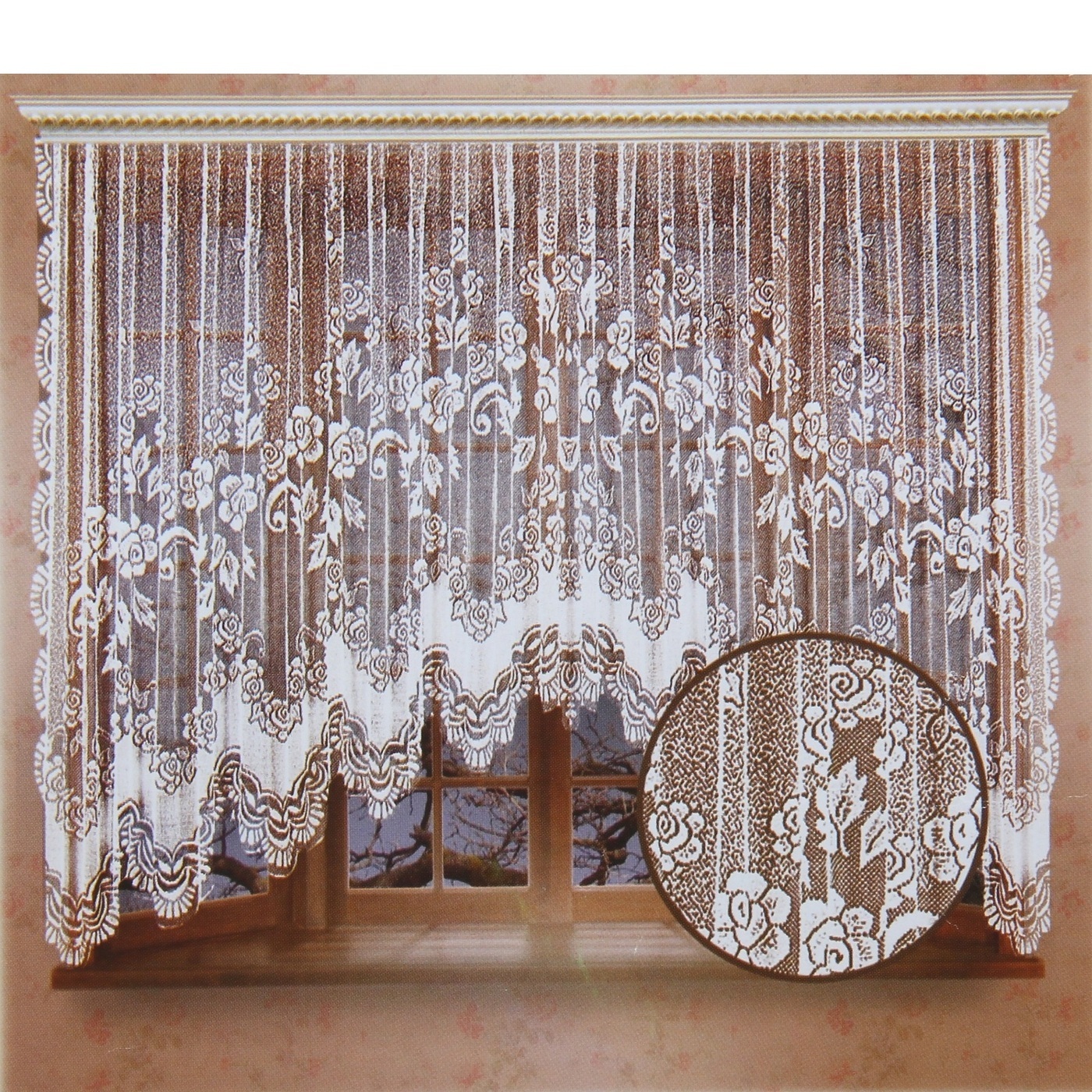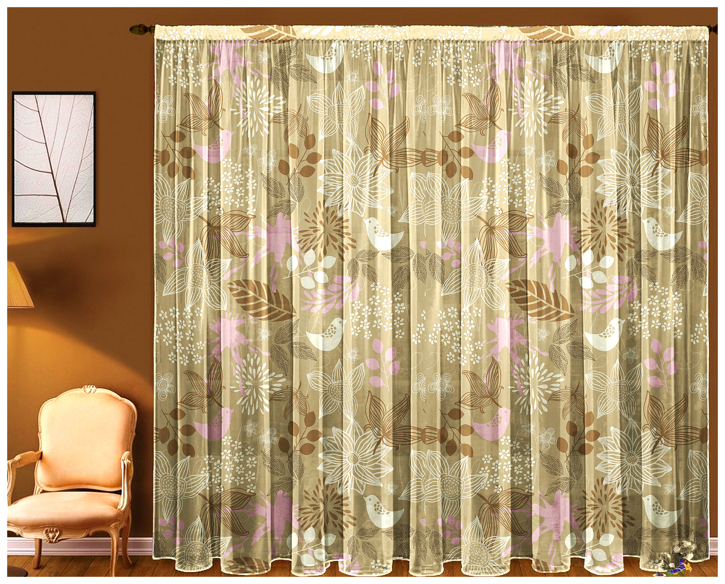 Цветы также могут присутствовать, но того же цвета, что и гардины.