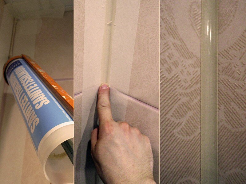 - На участках с небольшой нагрузкой можно применять силиконовый герметик. Также этот способ часто используют для прикрепления пластиковых уголков к кафелю на кухне или в ванной.