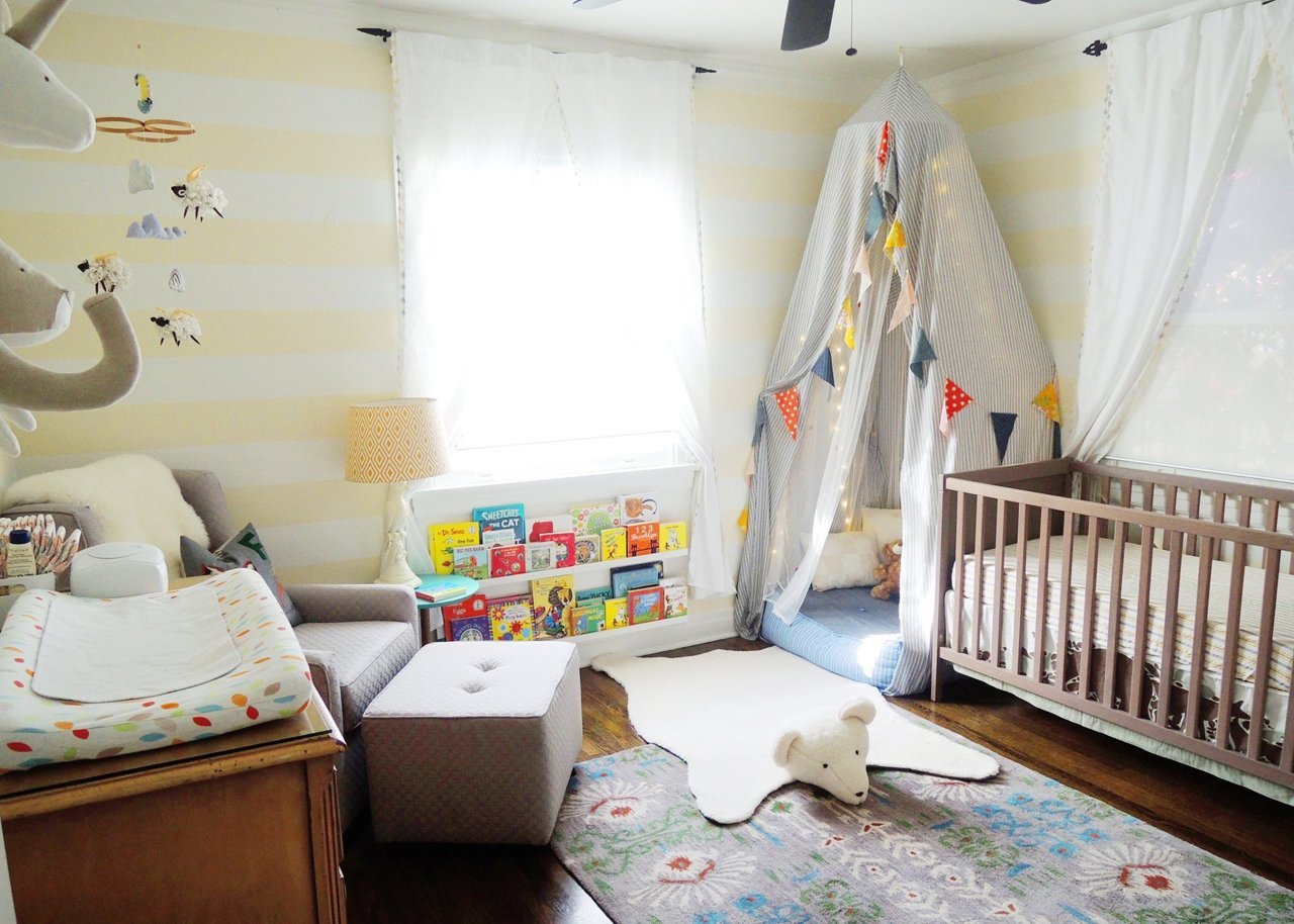 Минимум Просто и функциональноДизайн детской комнаты не обязательно должен быть ярким и громким. Многие родители-миллениалы предпочитают простой и простой стиль, который они могут изменять по мере взросления ребенка. Если вы ищете минималистичные идеи декора детской комнаты, то эта комната должна быть в верхней части вашего списка! Белые стены и воздушные шторы — отличный способ сделать комнату светлой и просторной.Милые игрушки и игровая палатка добавляют забавных элементов в эту детскую.