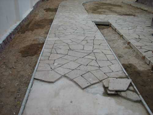 Укладка материала является самым ответственным этапом. Нужно правильно совместить большие и маленькие камни, чтобы они составляли красивую композицию и следить за тем, чтобы швы по горизонтали и вертикали не совпадали. Если камень имеет прямоугольную форму, то укладка проводится по типу кирпичной кладки, в которой совпадают горизонтальные швы.