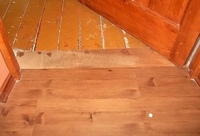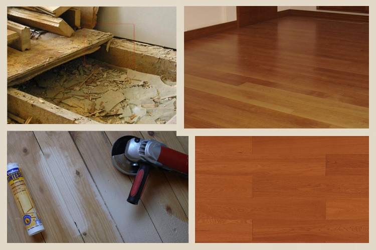 - прохудились или прогнили деревянные полы. При небольших повреждениях материала, можно уложить ту же доску, просто перевернув её. Место, которое подверглось влиянию плесени или гнили, необходимо обязательно обработать специальным составом. Если дерево имеет более глубокие повреждения, лучше провести полную замену дощатого участка;