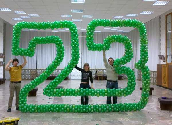 Вы можете использовать гелиевые шары в форме цифр и оставить их под потолком или зафиксировать на ножках праздничного стола. Если под рукой нет шаров нужной формы, то гигантские цифры следует составить из обыкновенных круглых шариков, скрепив их между собой при помощи двухстороннего скотча.