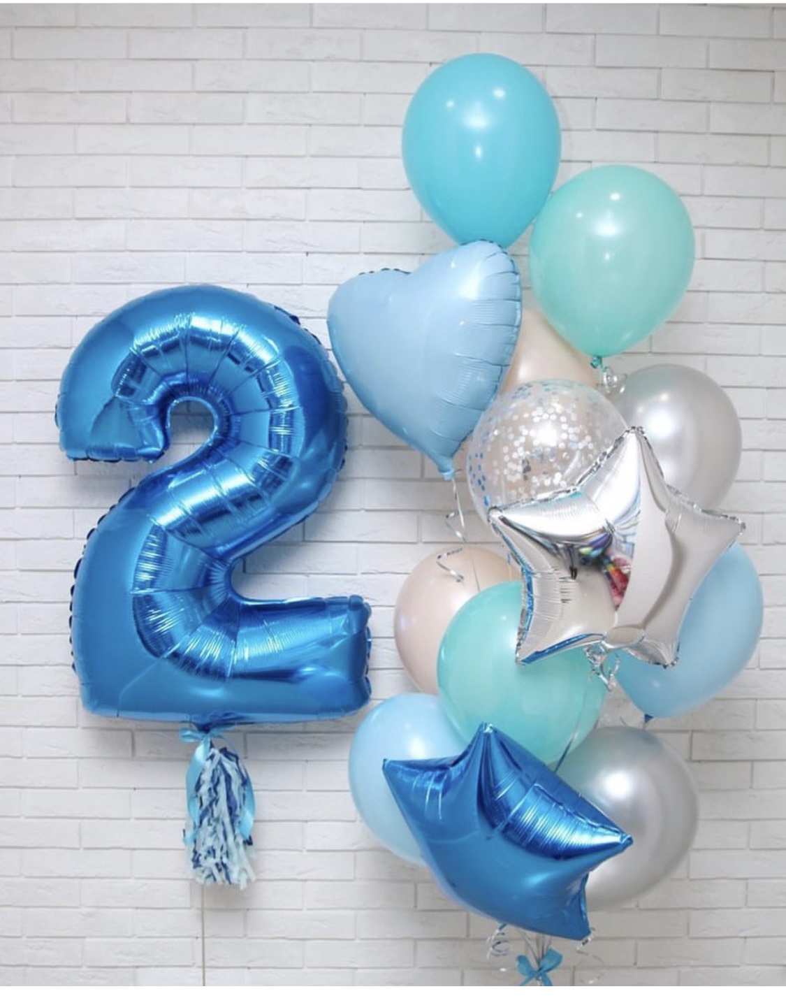 Синие и серебряные колонны с воздушными шариками