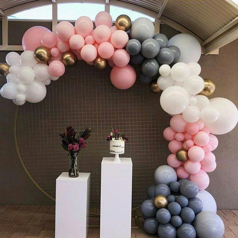 Розовая и серебряная арка из воздушных шаров