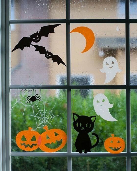 Ниже представлены интересные идеи, как украсить окна для Хэллоуина.