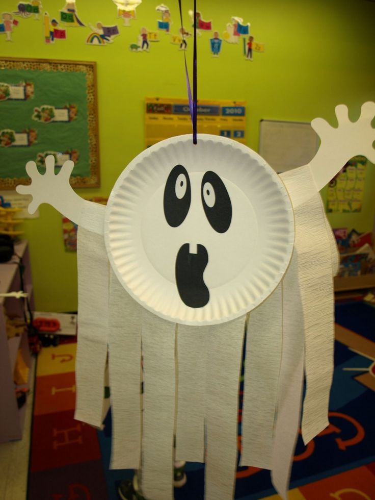 Если у вас есть доступ к высекальному прессу, вам подойдут гирлянды! Вырежьте кучу привидений или тыкв, наклейте несколько больших выпученных глаз и прикрепите их степлером к пряже или веревке.