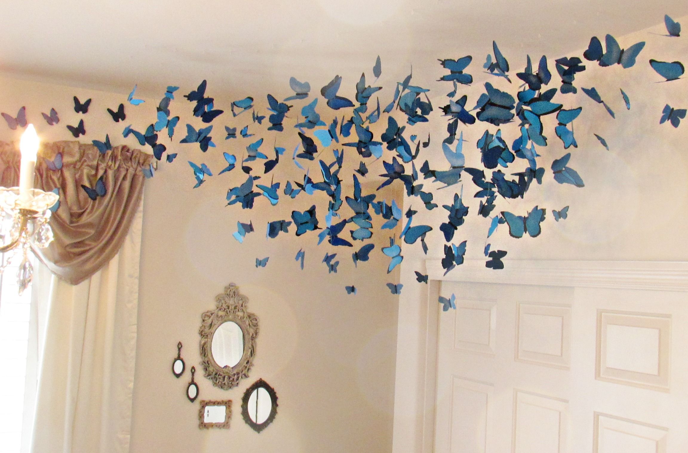 Наиболее простой способ украсить голые стены. При помощи виниловых ярких наклеек можно создать поверх стены какие-либо фрагменты из мультфильмов, кино либо природы. Однако не рекомендуется пользоваться покупными элементами, лучше всего запастись клейкой бумагой, карандашом, ножницами и сделать креативный, оригинальный дизайн. Например, можно распустить на стенах своими руками шикарные цветы, усадить вокруг них бабочек. Примечательно, что зимой декор может быть изменен на снежинки, деда мороза и снеговика.