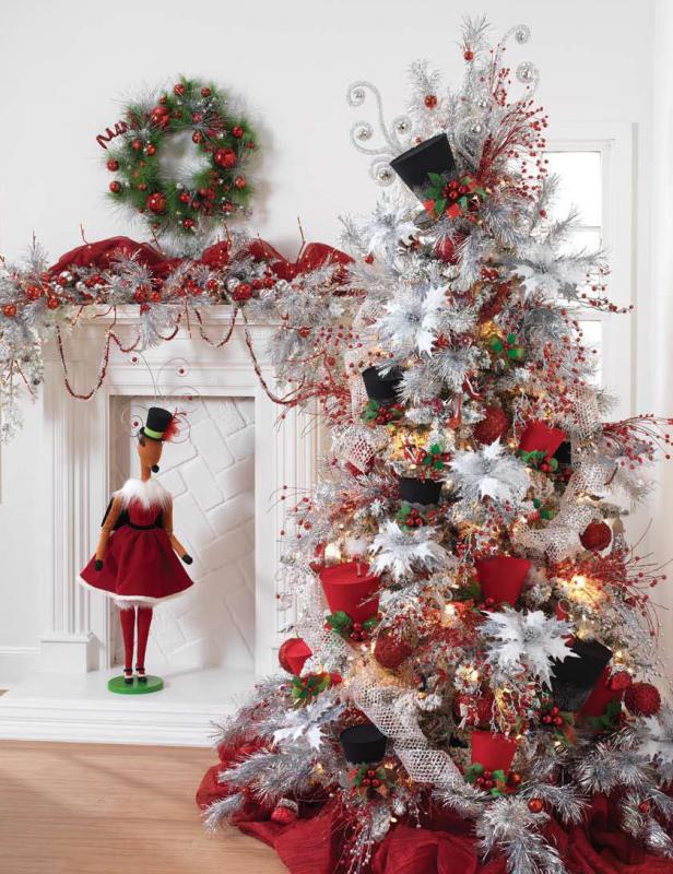На фотографии ниже прекрасный пример, как можно красиво украсить елку на Новый год (сочетание белого и красного без излишеств):