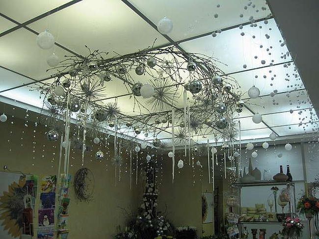 Елочные украшения на потолке