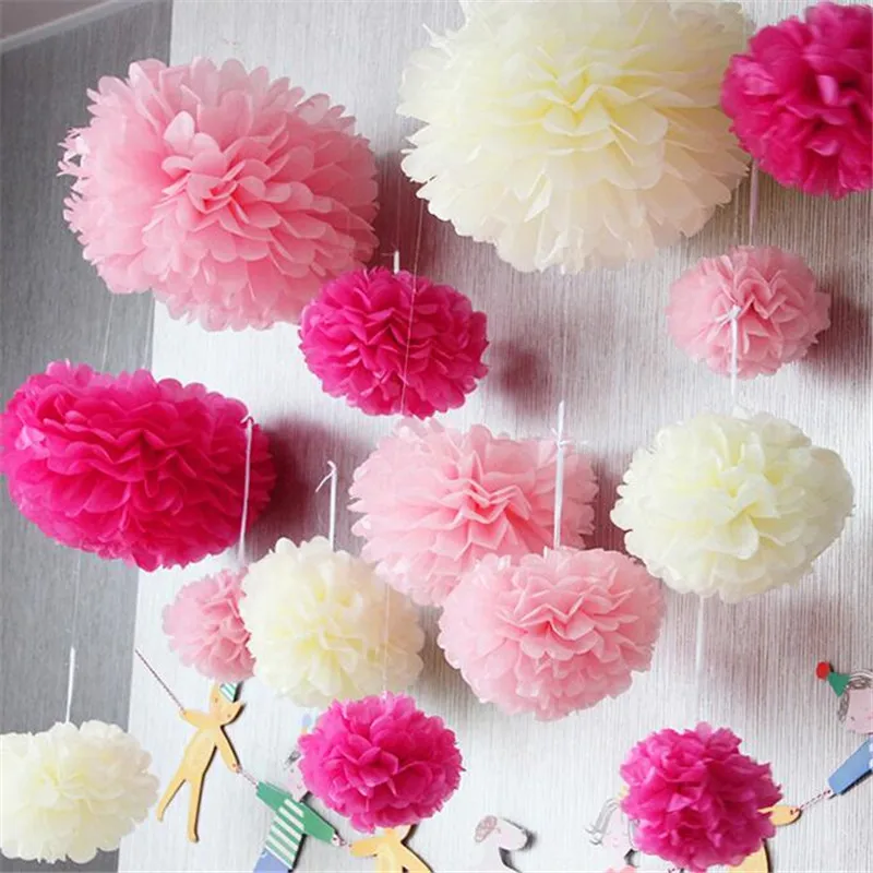 Помпоны могут быть разных цветов и размеров, что позволяет сделать их в тон стилистике помещения или праздника.