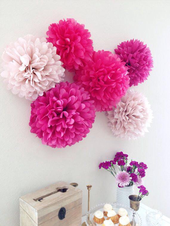 Яркие бумажные помпоны, похожие на диковинные цветы украсят собой любую вечеринку и эффектно подчеркнут ее цветовое оформление.