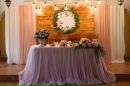 - Тематика и колор оформления стола должны отражать общую концепцию праздника, если это тематическое мероприятие, и сочетаться с нарядами молодоженов.
