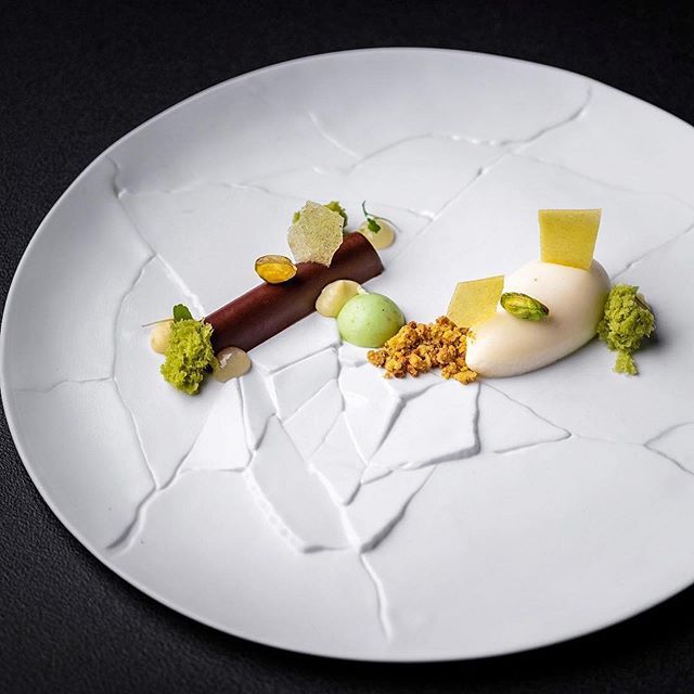 А как же непременный для капрезе — знаменитый соус песто? Его Джеймс выдавливает по несколько капель по обе стороны от каждого кусочка моцареллы. В конце геометрический рисунок блюда чуть разбавляют слайсы редиски и листики шпината, которые повар раскладывает по закуске пинцетом в художественном беспорядке. Согласитесь, что получается просто фантастическая красота!