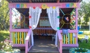 В таких постройках не рекомендуется использовать элементы декора насыщенных цветов – они будут быстро выгорать на солнце.