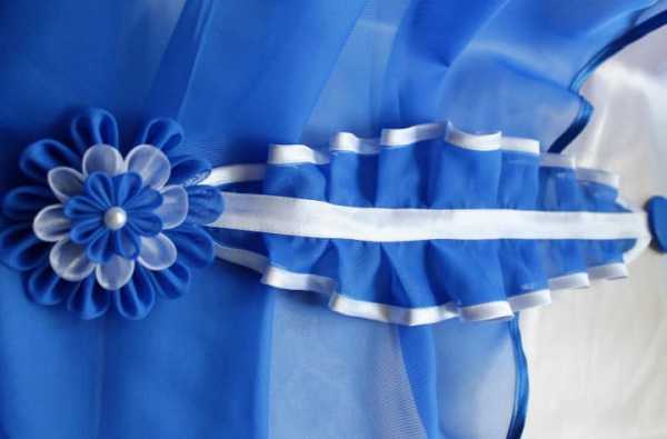 Бант можно создать из атласной ленты — это уже классический вариант такого украшения, а также из других видов ткани. Как и в случае использования тесьмы, выбор ограничен только фантазией хозяев.