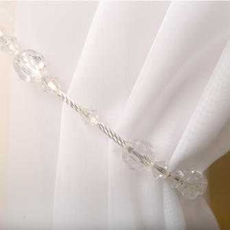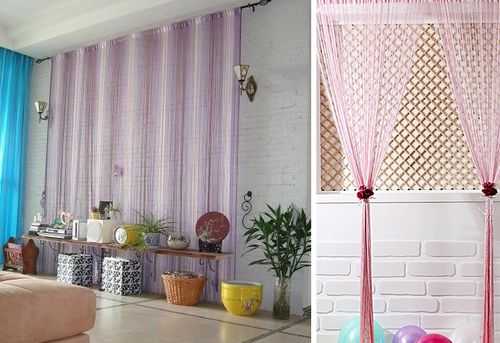 Невесомые, прозрачные бусины на органзе сделают штору еще более воздушной и подойдут для легких тканей, а вот помпоны из нитей могут утяжелить занавеси и подходят, скорее, для портьерного, плотного текстиля.