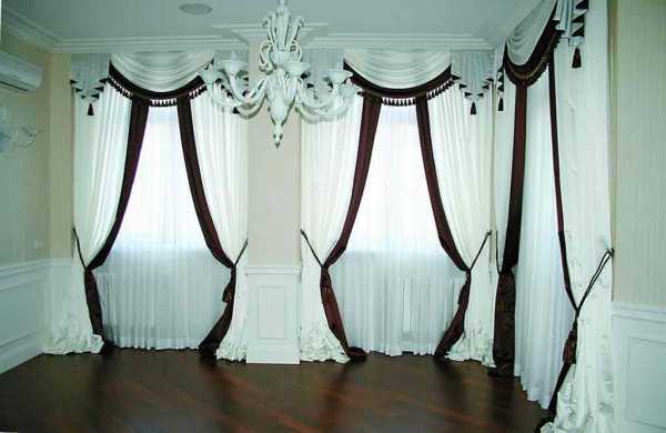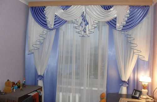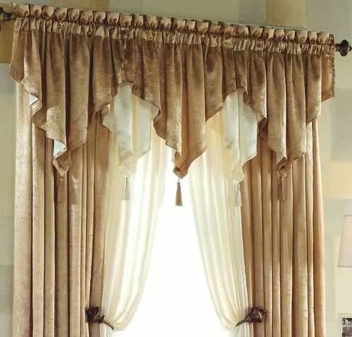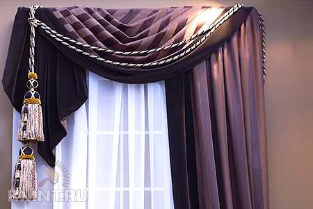 Драпировка может быть однослойной, однако сочетание двух и даже трех разных по фактуре и оттенку тканей дает потрясающе красивый эффект. Конечно, такой ламбрекен получается более пышным и подойдет не к каждому стилю интерьера.