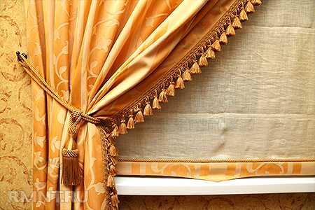 Если тесьма подбирается для отделки нижнего края римской шторы или короткой занавеси на кухне или в спальне, следует обязательно посмотреть, как будет выглядеть басон на просвете, а также тщательно подобрать форму, которая подчеркнет границы шторы и сделает ее более выразительной.
