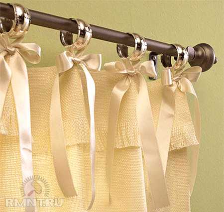 Крепления. Чтобы придать уют пространству, достаточно украсить гардину для штор своими руками. Например, закрепив ткань при помощи бантов из крупных лент или даже грубой веревки, способной разнообразить интерьер стиль эко.