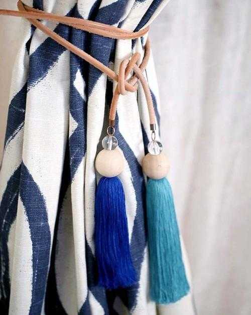 Чаще всего гардины или портьеры украшают кистями — разных цветов, размеров, из разных материалов или из пряжи. Сделать их самостоятельно не составит труда.