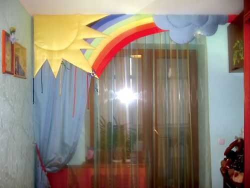 - Украшения для ламбрекена своими руками, например, в виде облаков или солнца.