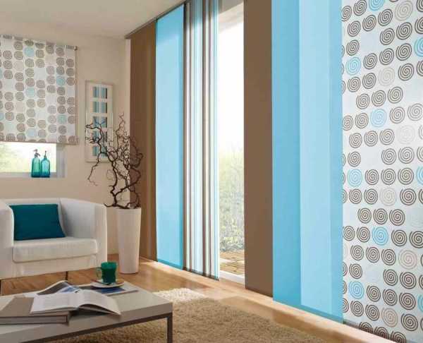 Особенно часто декорируются полосками ткани римские и японские шторы, что вполне понятно — пристрочить ткань на ровное полотно, а именно так выглядят оба варианта—намного проще. Да и самой ткани потребуется меньше