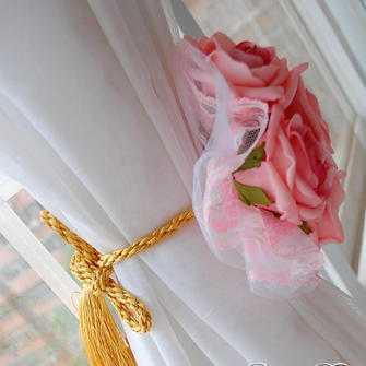 Помните, что для украшения тяжелой портьеры и цветок лучше изготавливать из такой же плотной ткани. А вот для легкой гардины и букет должен быть таким же воздушным — из тюля или органзы.
