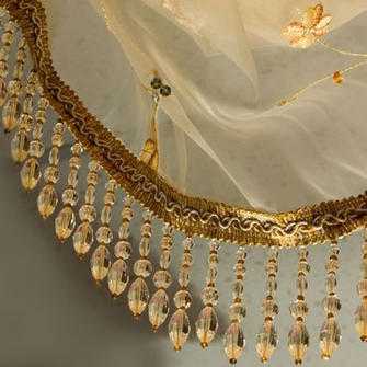 Карниз в свою очередь украшается разнообразными деталями: бусинами, стеклярусом, кисточками и цветами.