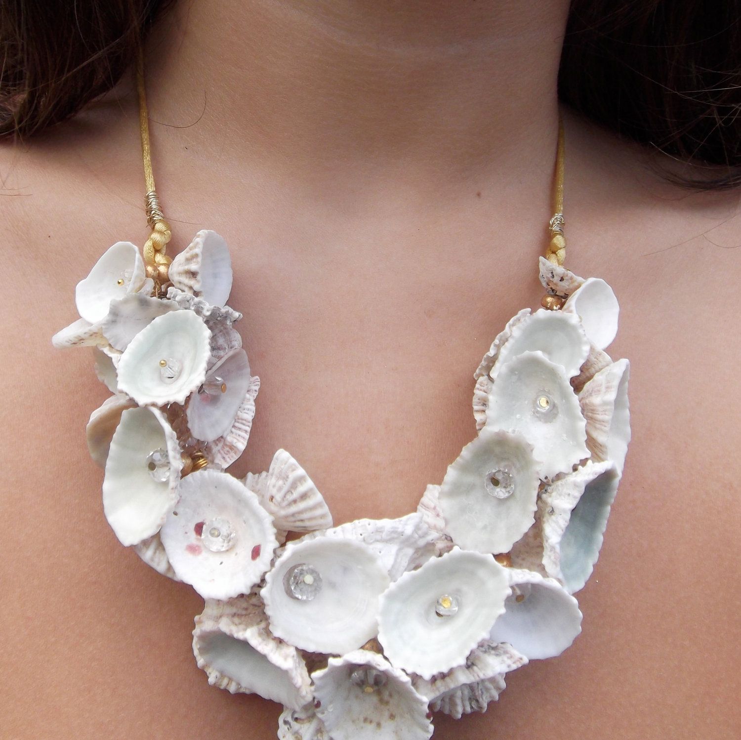 Очень эффектное крупное ожерелье можно сделать самим с помощью обработанных обточенных ракушек.