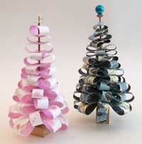 Сложить веером несколько бумажных листиков, склеить их между собой как показано на рисунке и закрепить на ниточкеДля изготовления шариков нужно взять цветной войлок, намочить его под краном, сминать рукой до достижения плотной структуры, дополнительно можно использовать мылоОчень необычно смотрится гирлянда с объёмными ёлочками.