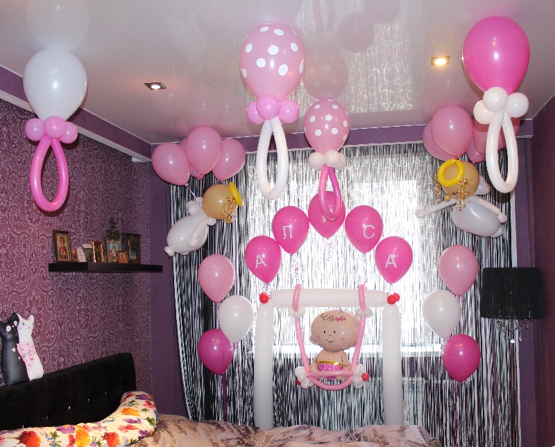 Украшение квартиры шарами на выписку из роддома