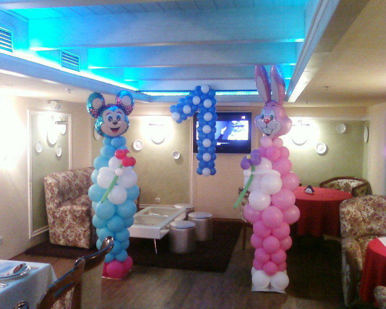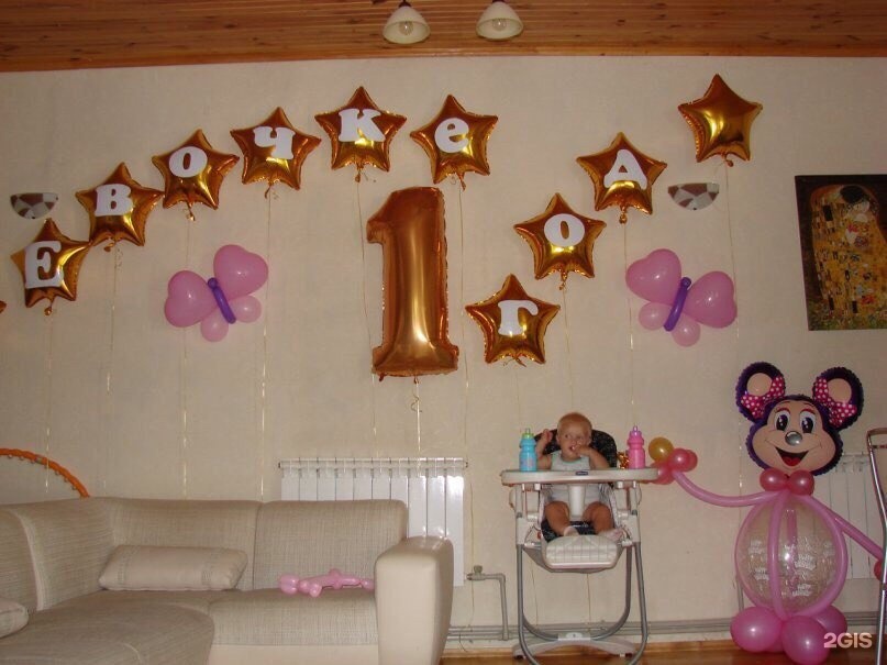 Если ребенку годикПервый день рождения малыша – это семейное домашнее застолье, которое следует наполнить запоминающимися трогательными моментами. Можно украсить комнату воздушными шарами: составить из них букеты и разнообразные фигурки.