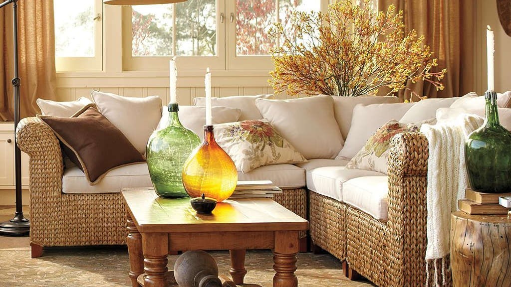 Наверное, самый домашний интерьер получается при оформлении помещения в деревенском стиле. А этот стиль, как известно, определяют аксессуары. Здесь пригодится все, что сделано своими руками или хотя бы отдаленно напоминает рукотворные вещи. Это всевозможные плетеные коврики и корзины, вязаные пледы, изразцы возле камина или на кухне, вышитые крестиком или связанные крючком салфетки, развешенные по стенам пучки сухой травы, домотканые дорожки, на полках фаянсовая и глиняная посуда, а также всевозможные статуэтки, вазочки, шкатулки, декоративные свечи.