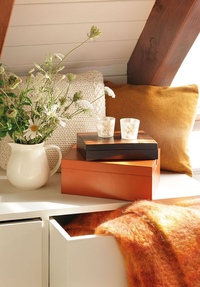 В них удобно хранить пледы, журналы. Такие вещи действительно выглядят тепло и уютно. К тому же они стоят совсем недорого и точно не повредят вашему бюджету. Альтернативой корзине может стать плетеный ящик с крышкой.