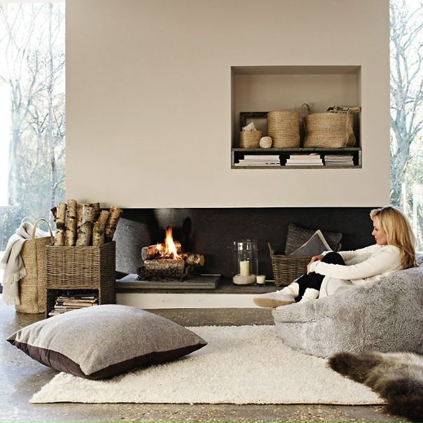 Мягкий текстиль сам по себе уютный. Больше ворса на ковре в зоне отдыха может стать настоящим магнитом. Текстиль не фабричного производства, заказанный у мастера или привезенный из путешествий, станет оригинальной изюминкой дизайна.Подбирайте актуальную фактуру ткани, чтобы она не вступала в конфликт с остальными деталями интерьера.