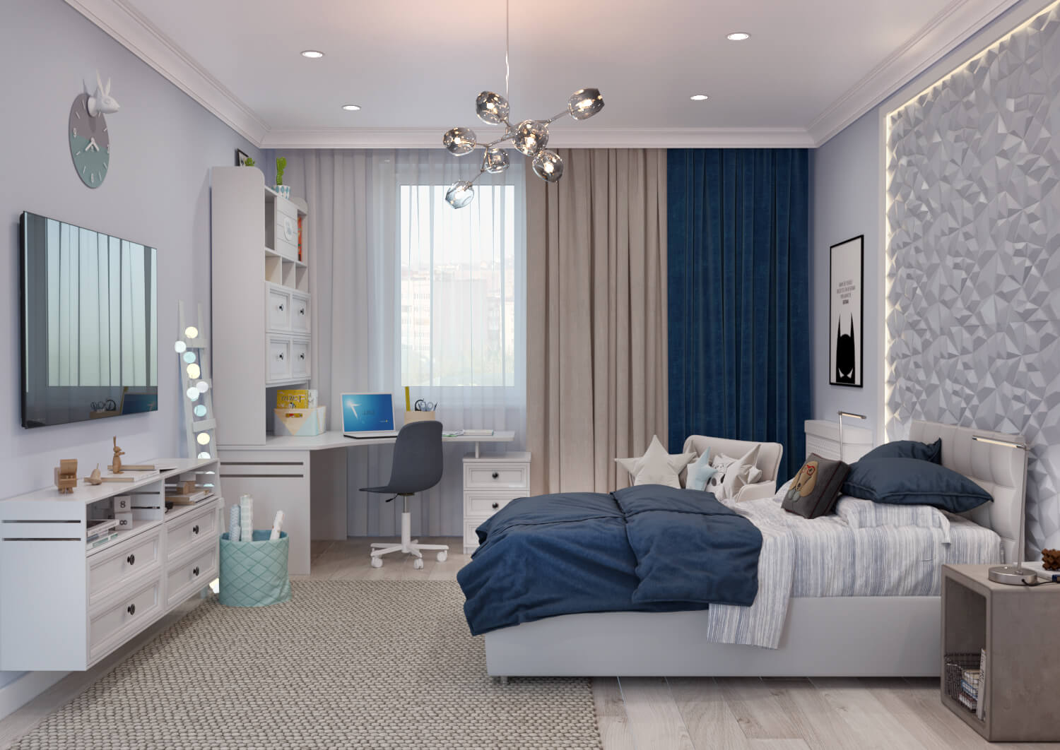 Профессиональные дизайнеры интерьеров помогут быстро и качественно разработать для вас проект помещения с учетом всех пожеланий ваших детей и финансовых возможностей. Важно понимать, что подросток – это уже не тот ребенок, за которого все решения принимали вы, поэтому дайте ему возможность самому попробовать разработать свой уникальный подростковый интерьер.