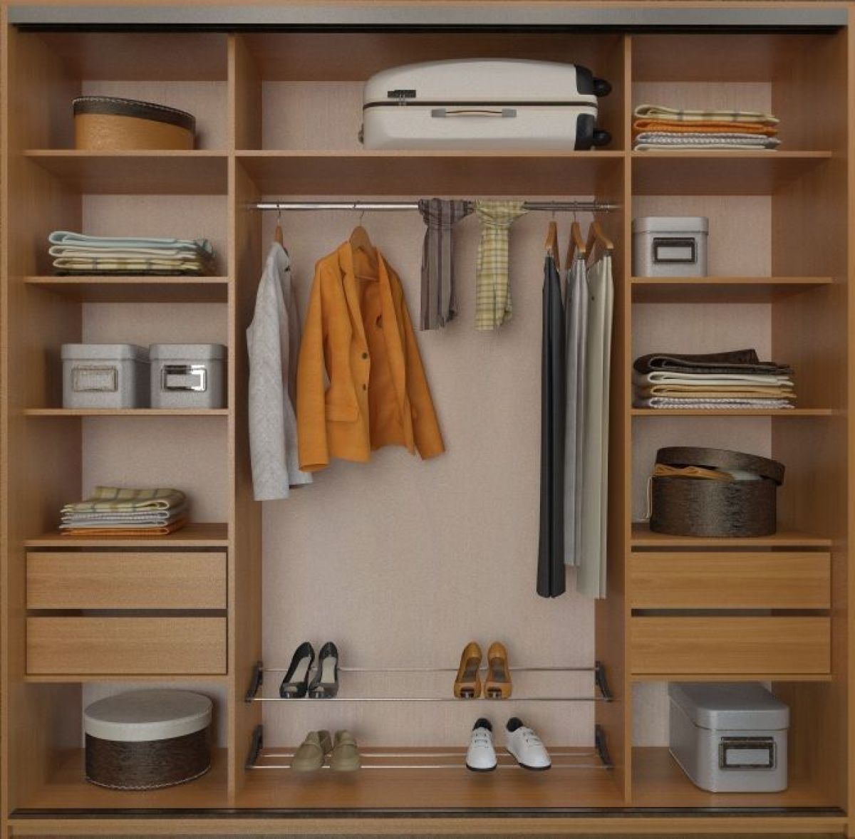 - чемоданы – учитывая большое количество моделей с разными габаритами, следует планировать отсеки на основе личных потребностей;