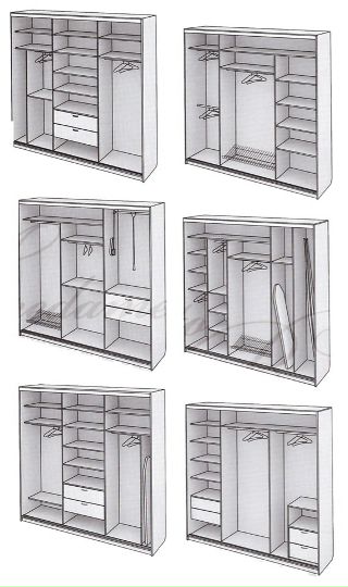 Для того чтобы определить количество и виды комплектующих для наполнения, предварительно нужно выяснить кто, в каком количестве и какие вещи будет хранить в шкафу. Навести порядок в доме можно тогда, когда каждая вещь имеет свое место.