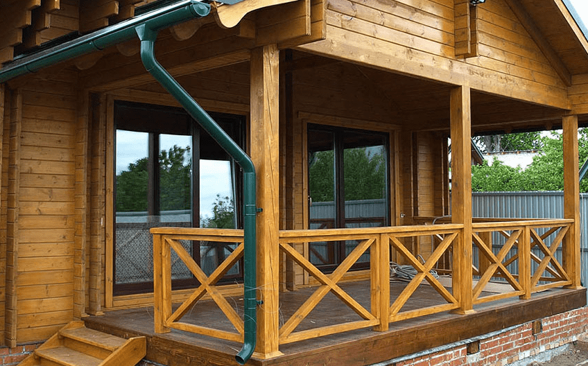 Чаще всего веранды сооружают, использовав натуральную древесину. Перед тем как приступать к процессу ее отделки, все деревянные конструкции обязательно нужно обработать с помощью антисептического состава.